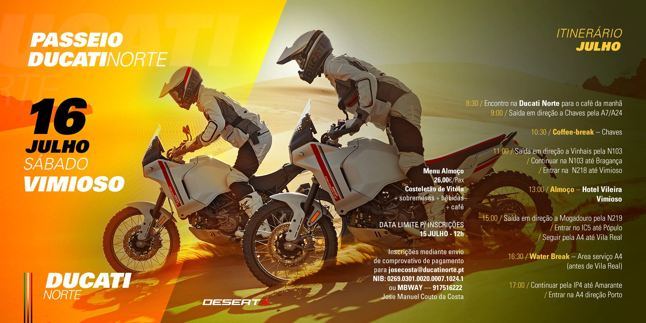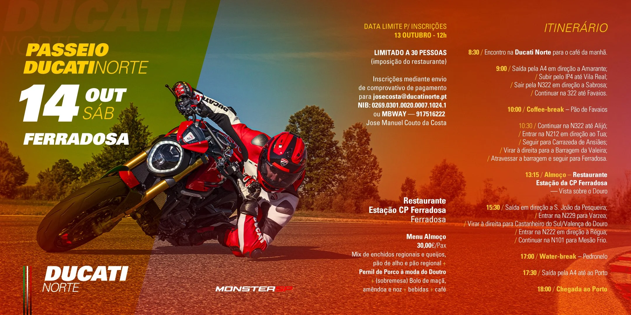 Inscrições mediante envio de comprovativo de pagamento para josecosta@ducatinorte.pt