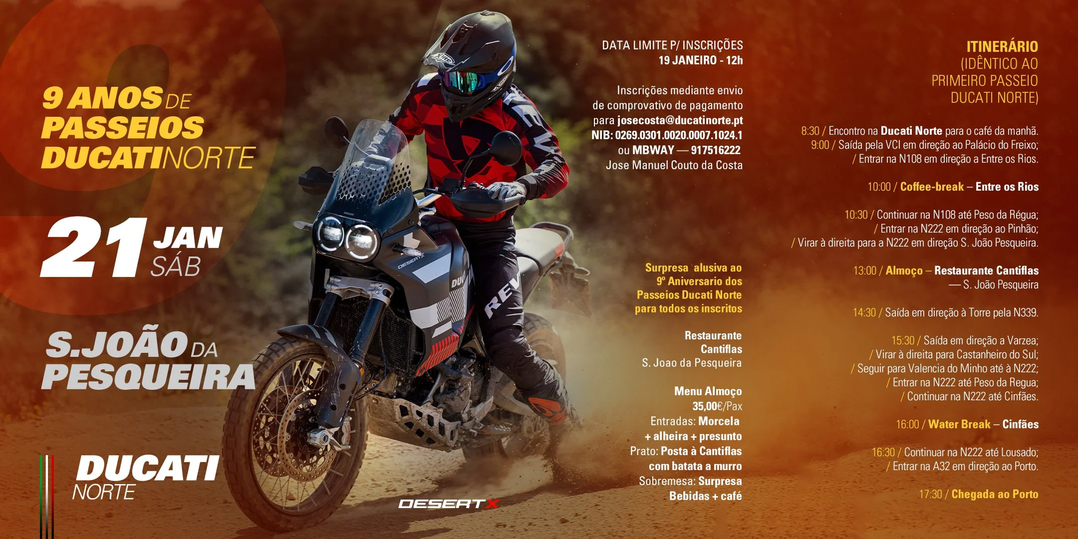9:00 — Encontro na Ducati Norte para o café da manhã.